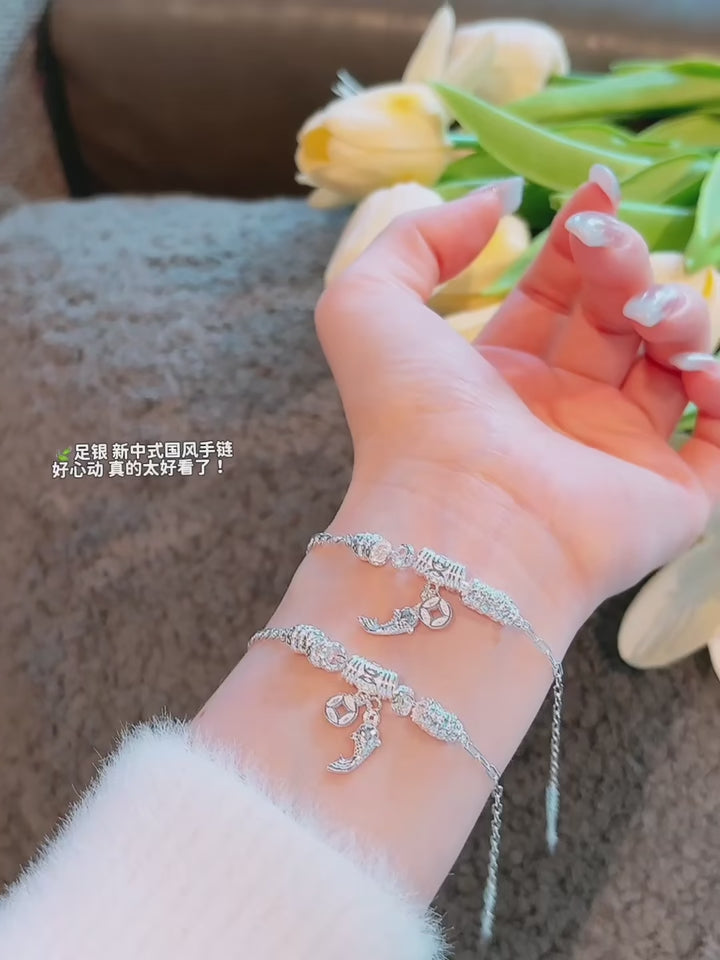8. Gelang Koin Uang Ikan Perak 999 dengan Tanda & Sertifikasi S999 8. Fish Money Coin Siver 999 Bracelets with S999 Mark & Certification